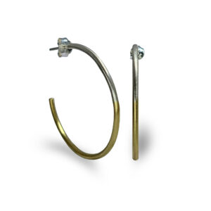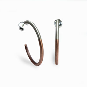 Les arracades i aros de grans dimensions són el cor de Hoops: formes pures i simples que resplendeixen amb l’elegància dels seus materials. La unió de la plata amb coure o llautó afegeix un toc distintiu i sofisticat, ressaltant la bellesa de l’art minimalista.