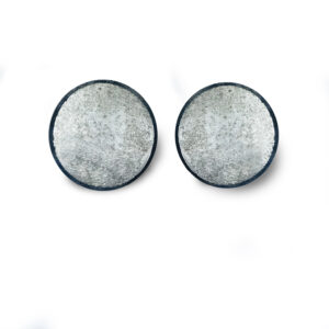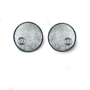 Arracades de plata ennegrida o blanca en forma de rodona d' 1.4 cm. de diametre concau, amb textura de pols de plata. Tanca pressió de plata.
