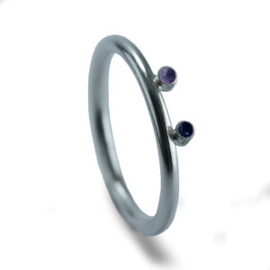 Aro fil rodó de plata amb 2 punt de plata amb esmalt fred de color lila i blau.