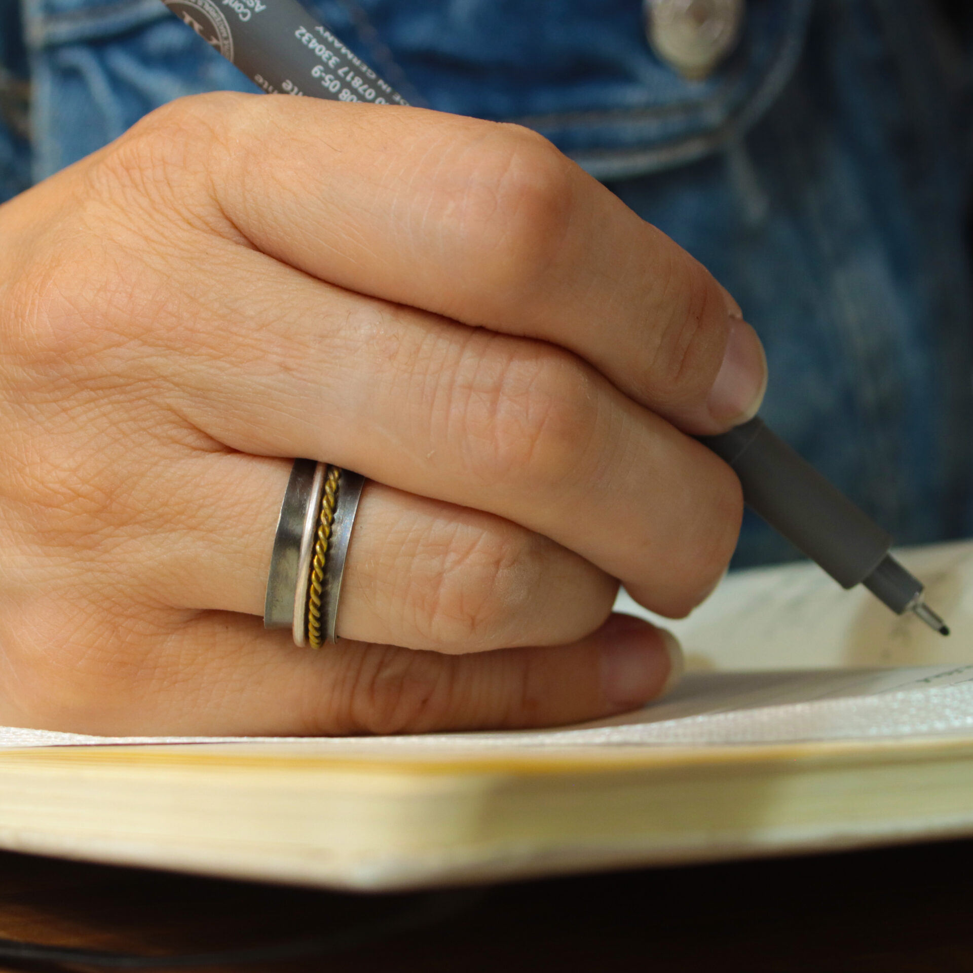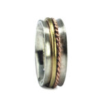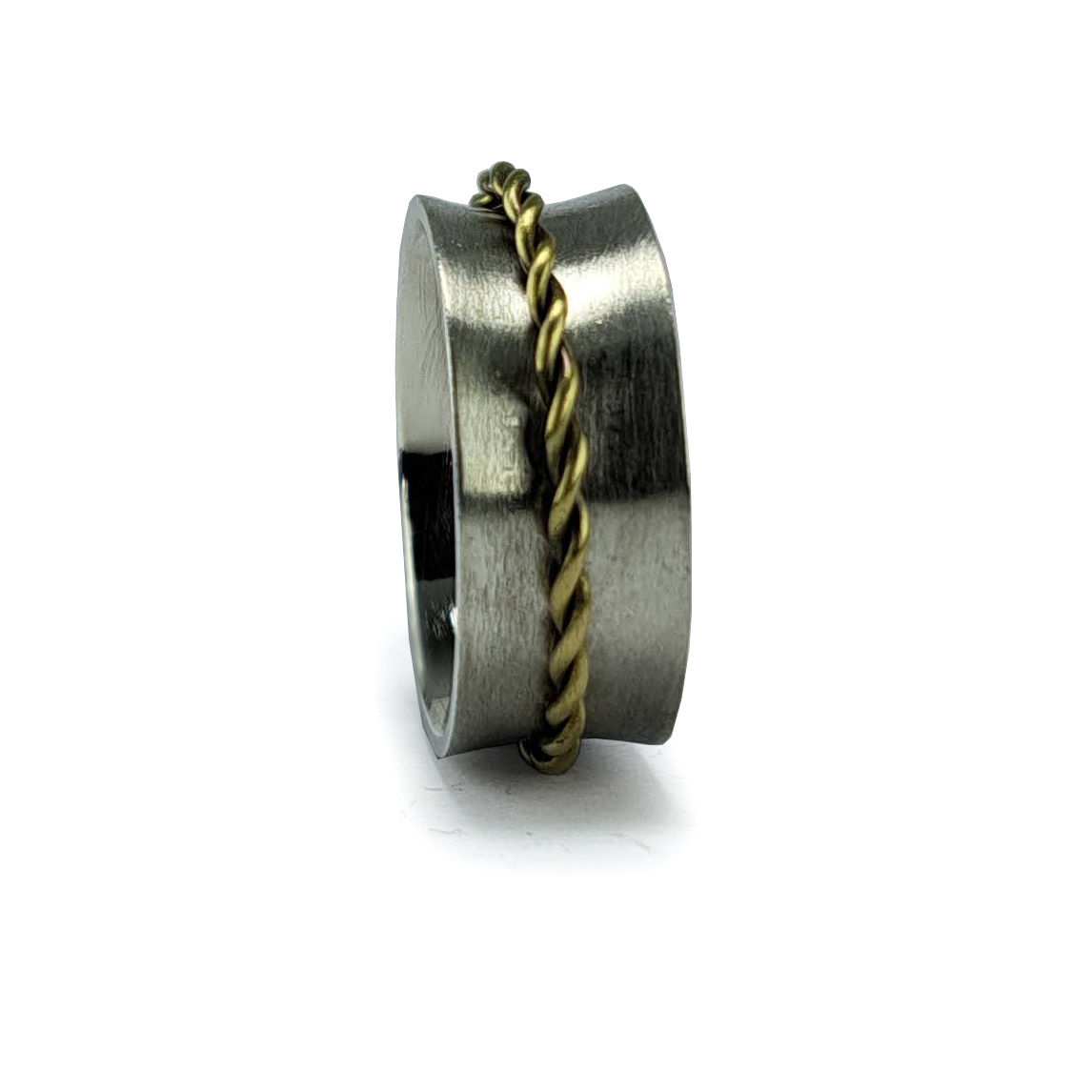 Anell base de plata lliç duns cm damplada amb forma concava Combinat amb aros trenats o lliçostan de plata llautó com coure