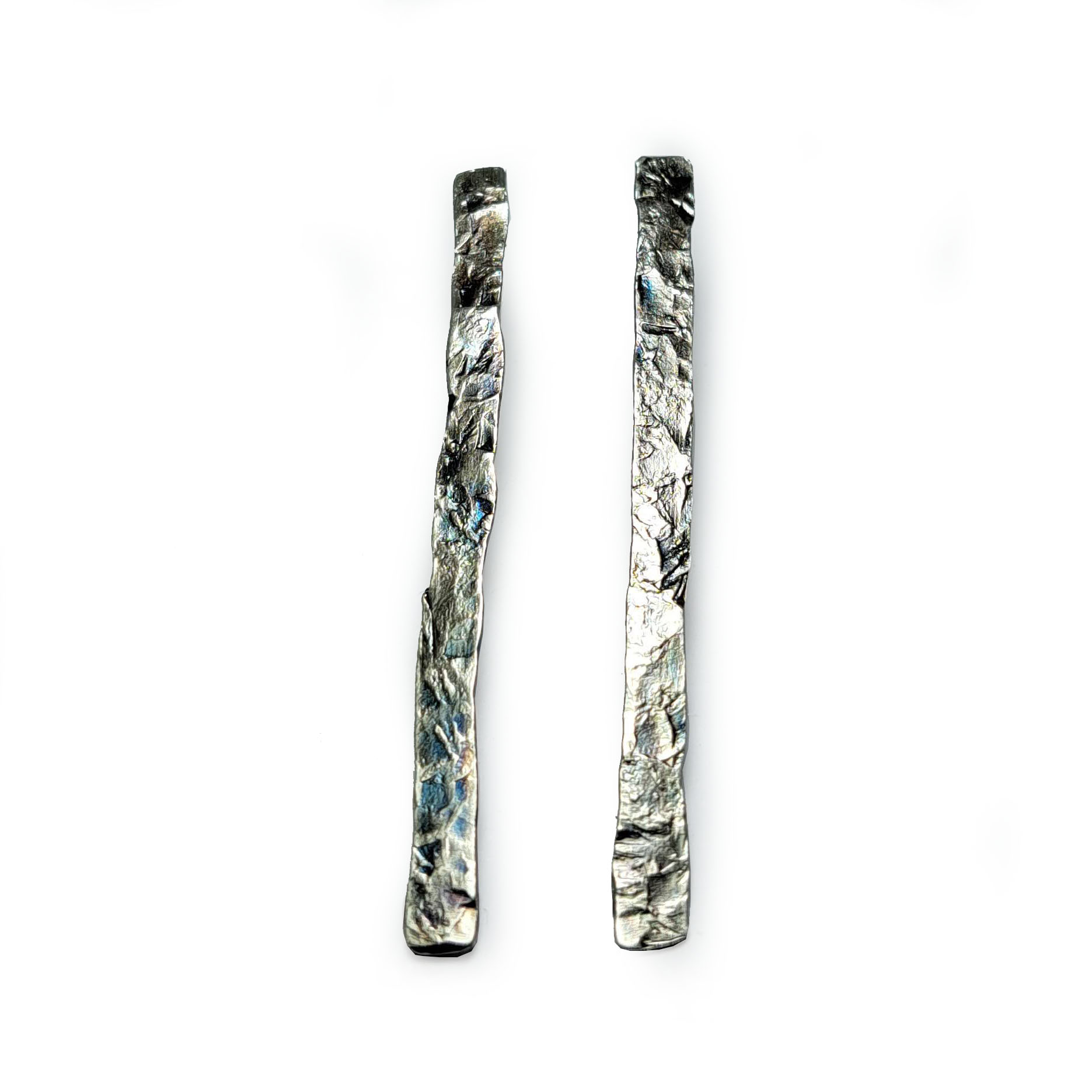 Arracades de la col.lecció BRERA, arracada de plata en forma de tira rectangular amb textura martelé d’uns 4.7cm.de llargada. Tanca pressió de plata.