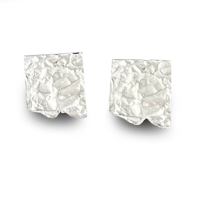 Arracades de plata d’uns 1.3cm , amb forma de rectangle amb extrem irregular de plata amb textura refossa. Tanca pressió de plata.