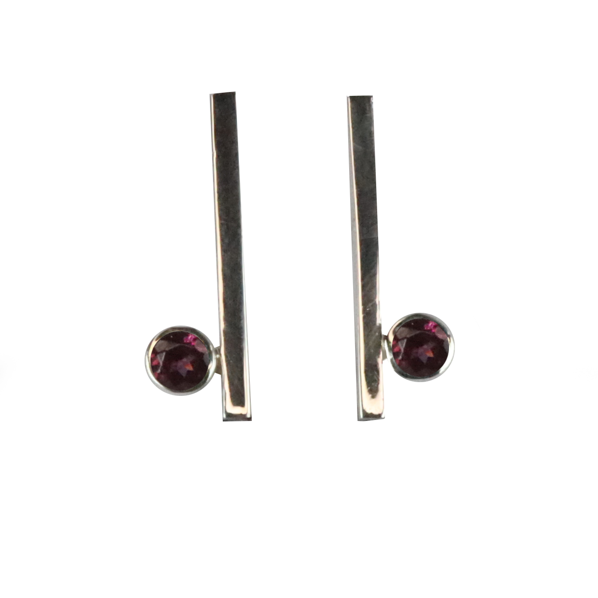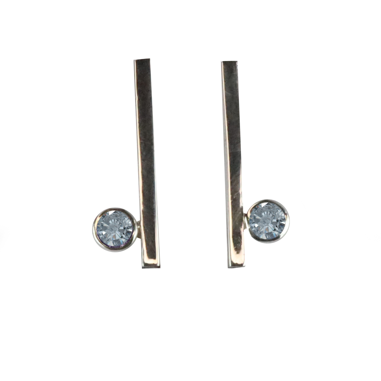 Arracades de la col.lecció Hula Hoop, format per fil quadrat de plata d’uns 0.2cm i d’uns 2cm de llargada. Amb boca de plata i pedra de 3mm. Tanca pressió o gantxo.