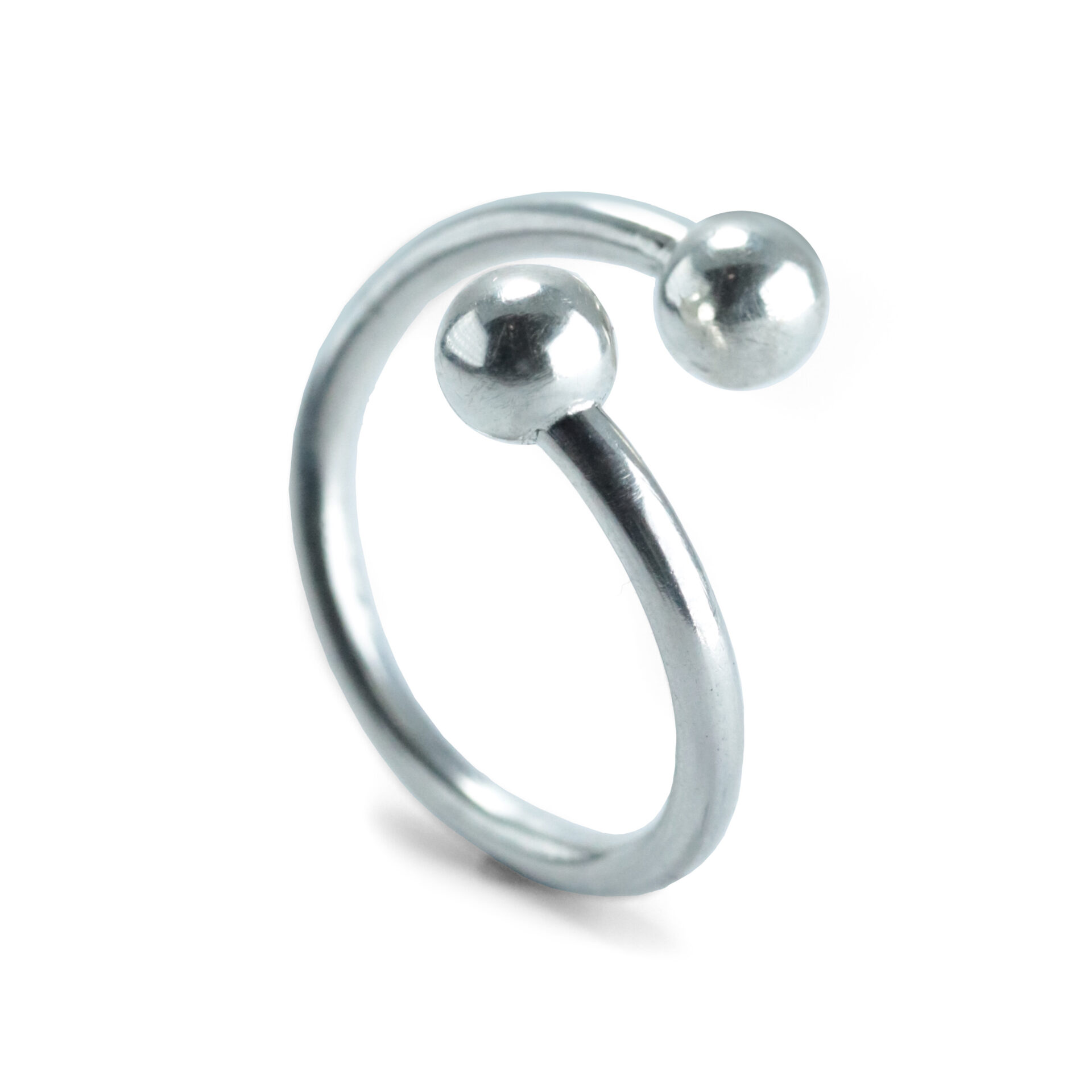 Aro obert de fil rodó de plata d’uns 2mm, amb 1 bola de plata de 5mm a cada extrem .