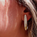 Arracades de la col.lecció BRAVA, de plata en forma ovalada concava amb textura terrosa d’uns 4cm.de llargada, amb o sense part d’ella amb or de 24 kilats (Kum Boo). En un laterar, boca d’oro de plata ambcirconites o diamants i punt d’or. Tanca pressió / gantxo de plata.
