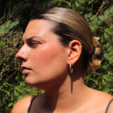 Arracades/criolles de plata polida o ennegrida en forma de ” C ” de fil amb textura de craters, d’uns 1.4cm de diametre interior.