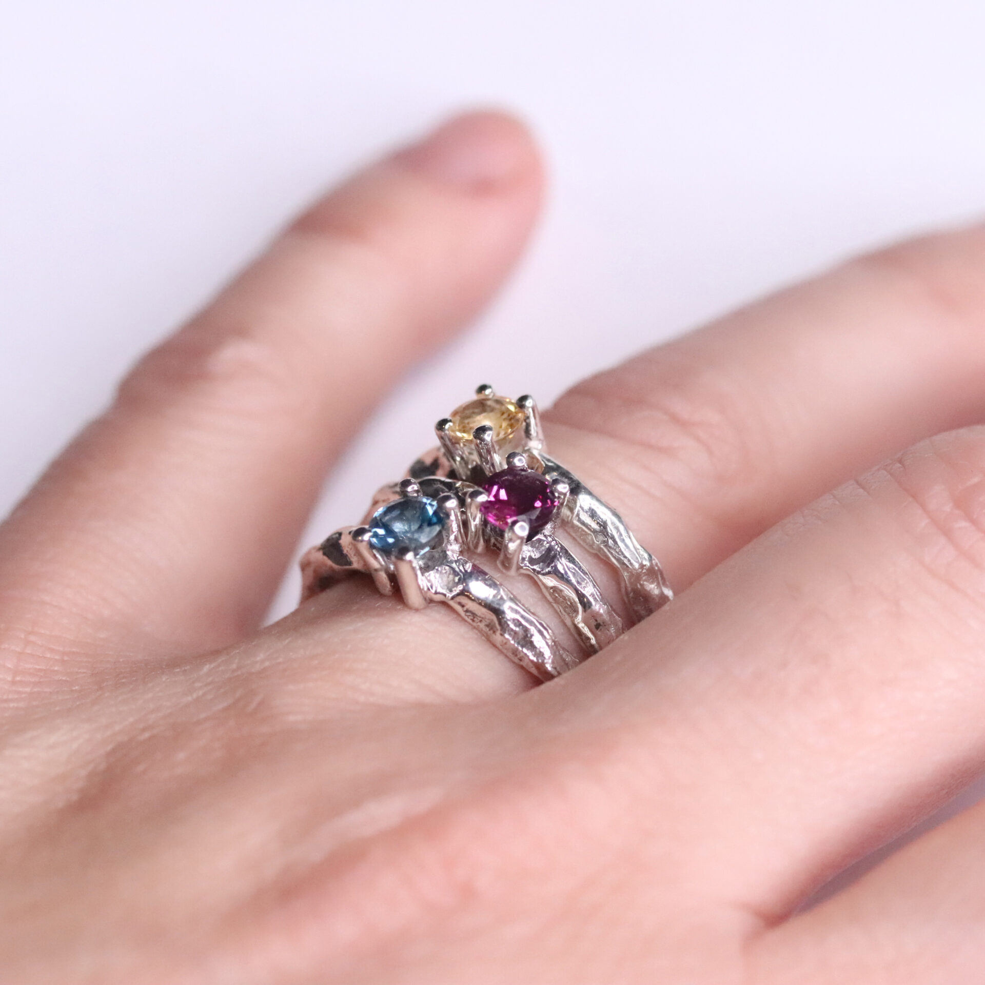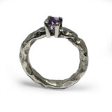 Anell format per un aro de plata amb textura de cratersamb grapes de plata amb una pedra de mm