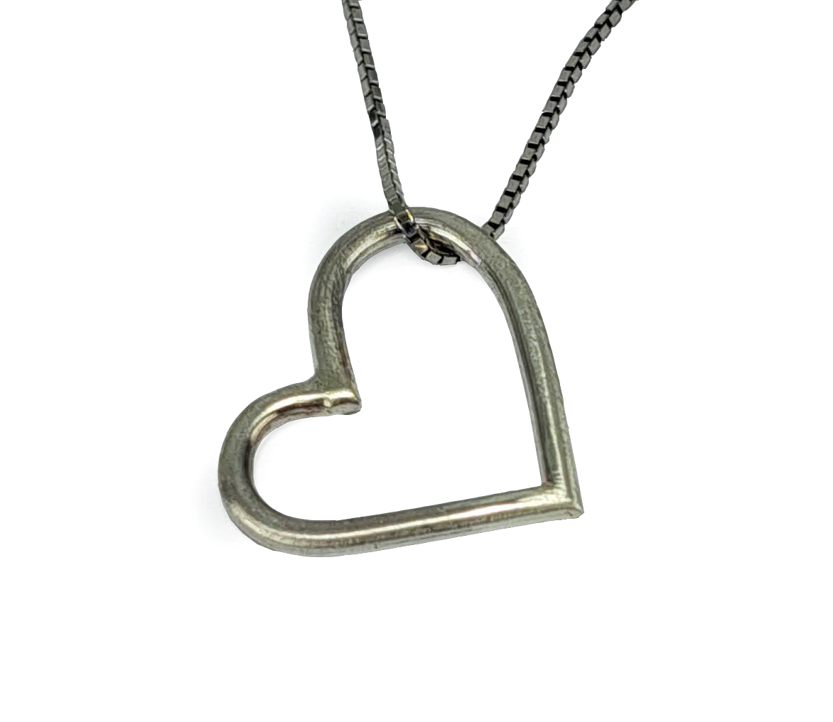 Penjoll de la col.lecció cor, en forma de cor ,format per fil rodó d’uns 0.2cm de gruix d’uns 1.8cm de diametre. Cordó no inclós.