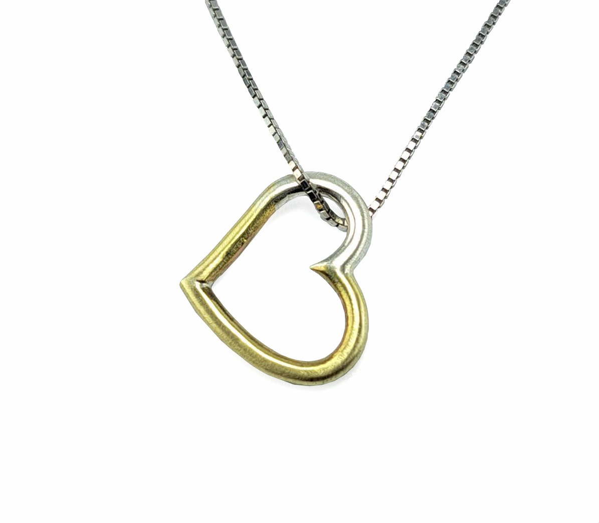 Penjoll de la col.lecció cor, en forma de cor ,format per fil rodó d’uns 0.2cm de gruix d’uns 1.5cm de diametre, amb part de plata i part de llautó. Cordó no inclés..