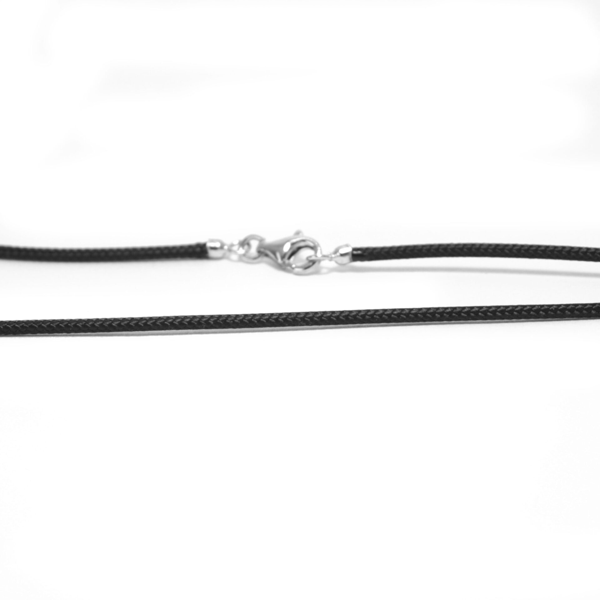 Cordó nautic negre d’uns 1.5mm de diametre. Terminals i tanca de plata.