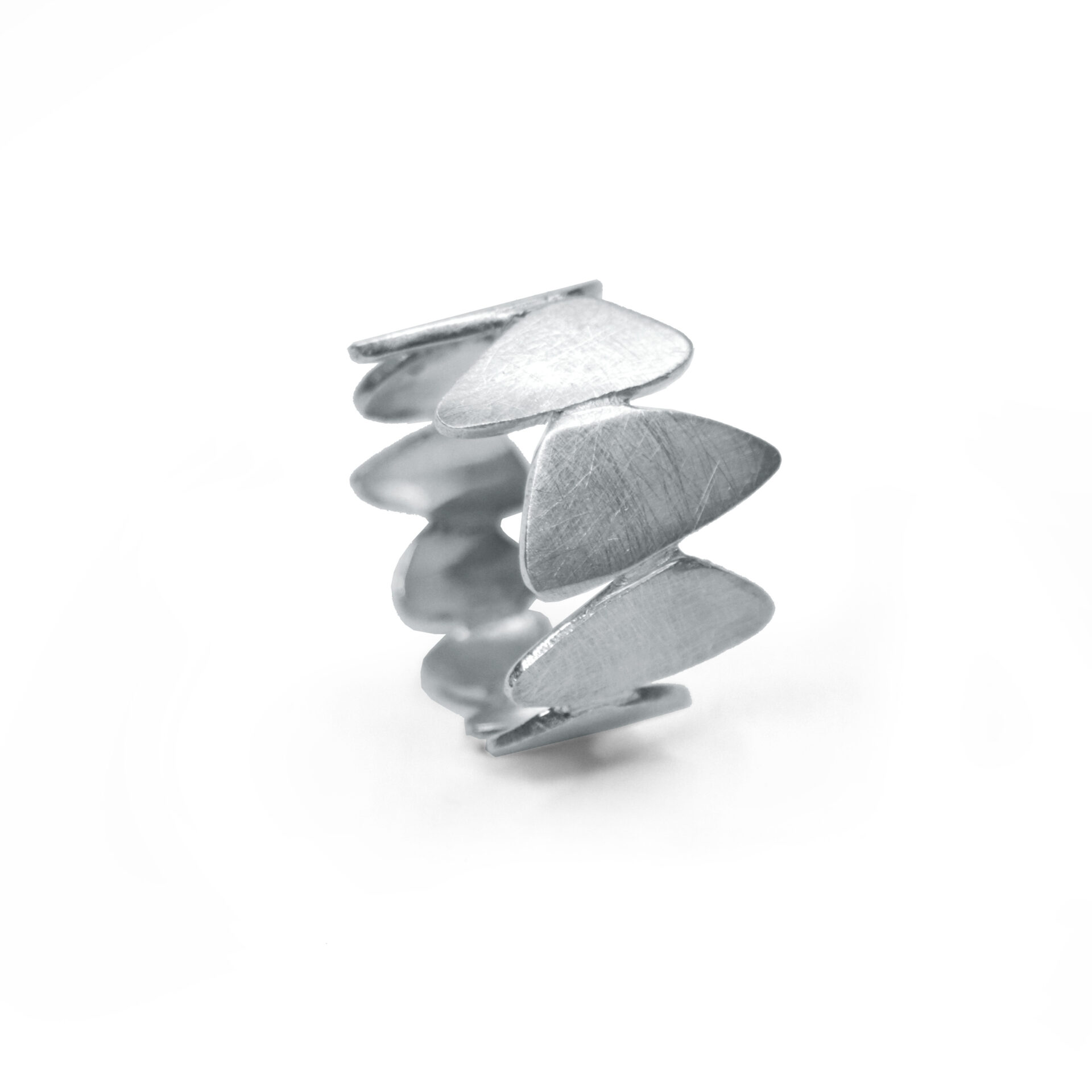 Anell de la col.lecció FITA, format per varies peces en forma de pedra de diverses mides amb acabat ratllat.