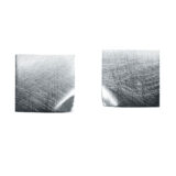 Arracades de la col.lecció Foli, de plata en forma de quadrat d’uns 1cm , amb una cantonada aixecada . Tanca pressió.