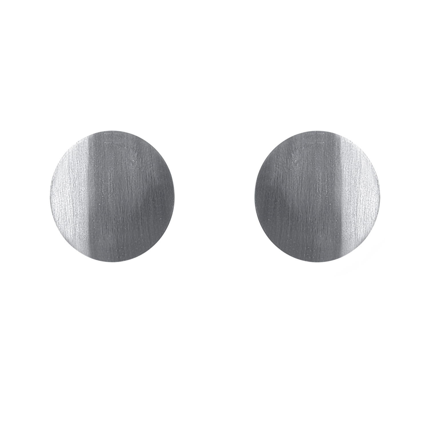 Arracada de la col.lecció GONG, formada per peça rodona de planxa de plata d’uns 1cm. de diametre, amb plec. Acabat mate.Tanca pressió.