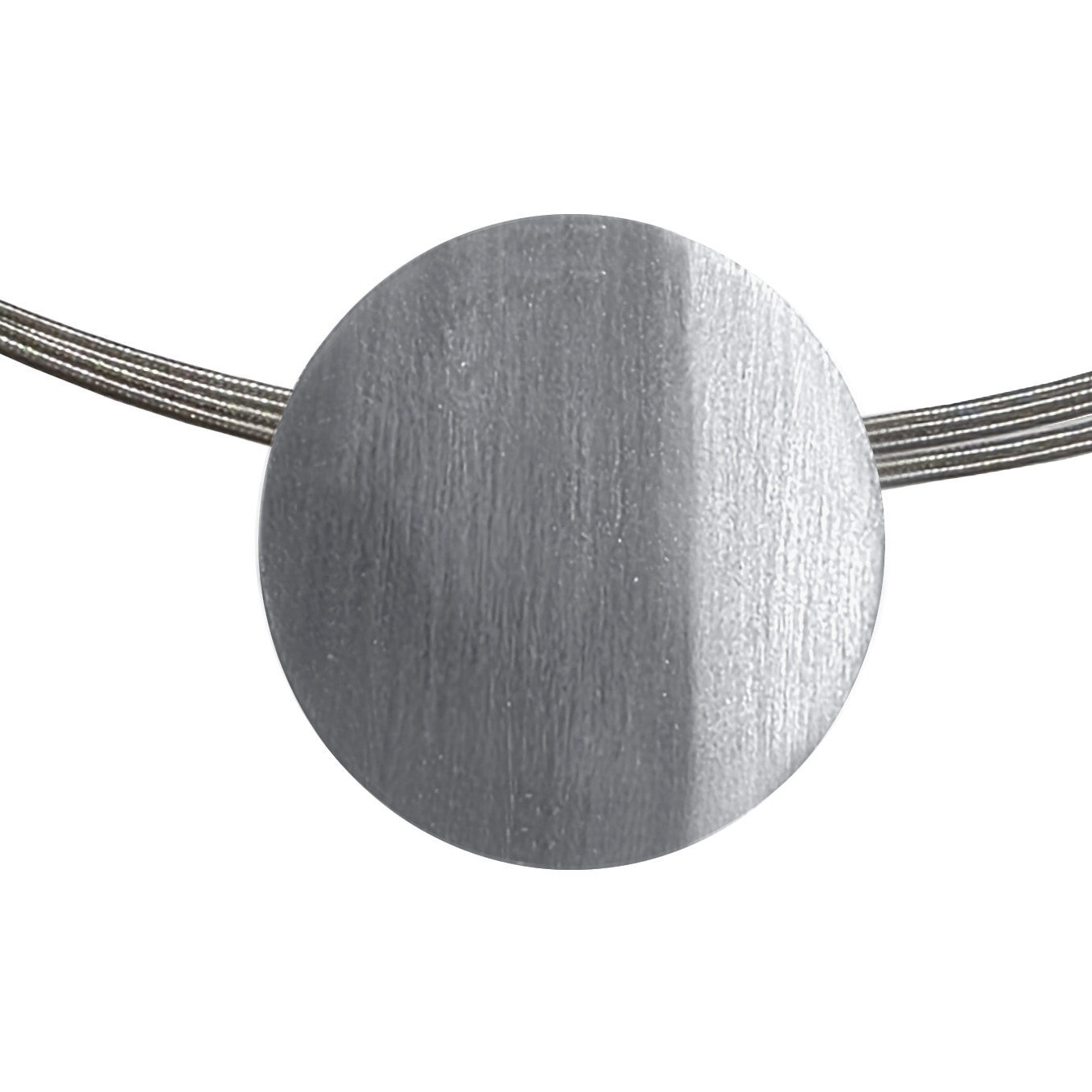 Penjoll de la col.lecció GONG, formada per peça rodona de planxa de plata d’uns 2.5cm. de diametre, amb plec. Acabat mate.Cordó no inclós.