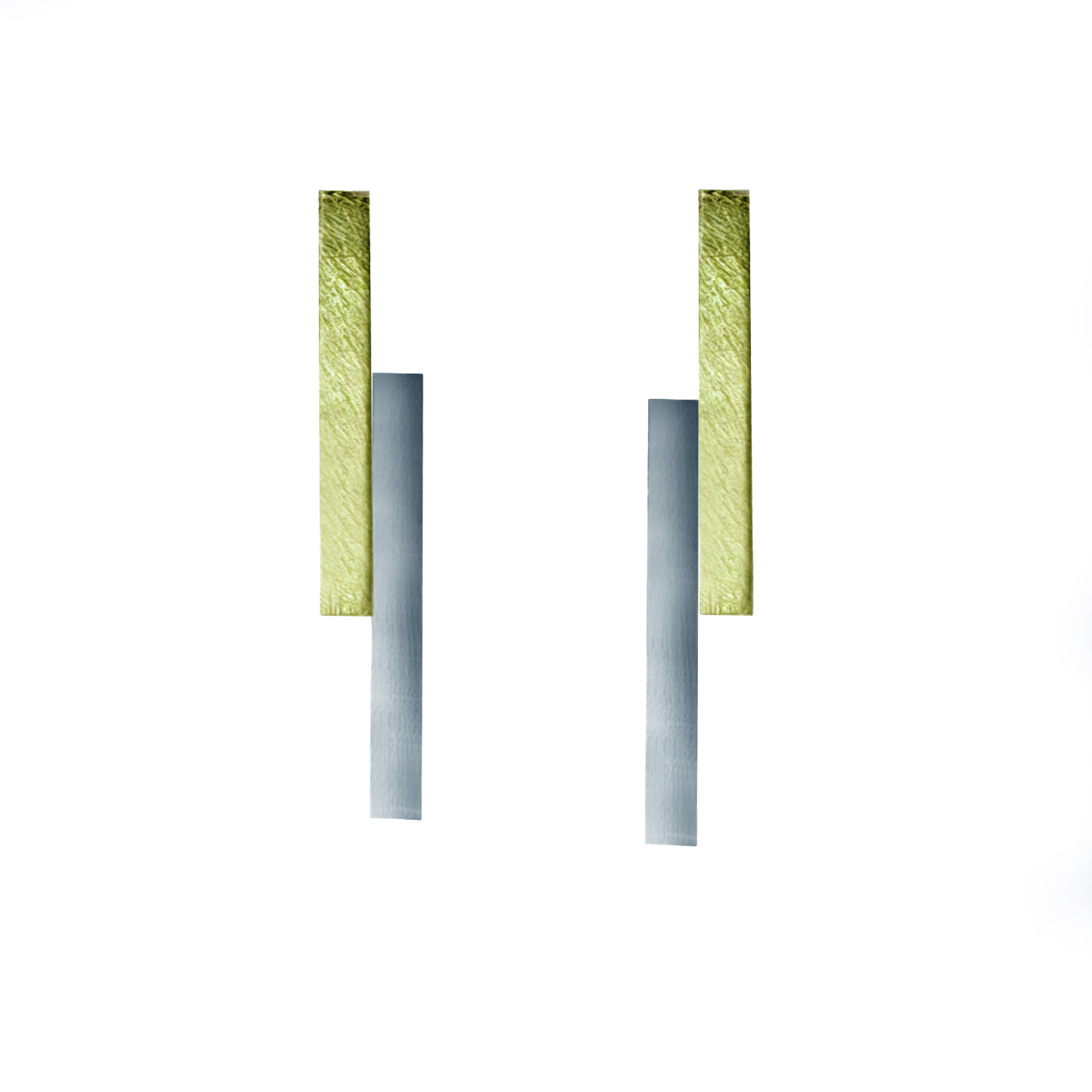 Arracades de la col.lecció Lili, format per 2 rectangles d’uns 1.5×0.2cm un de plata i l’altre de plata i a la part superior amb una làmina d’or groc.Tanca pressió.