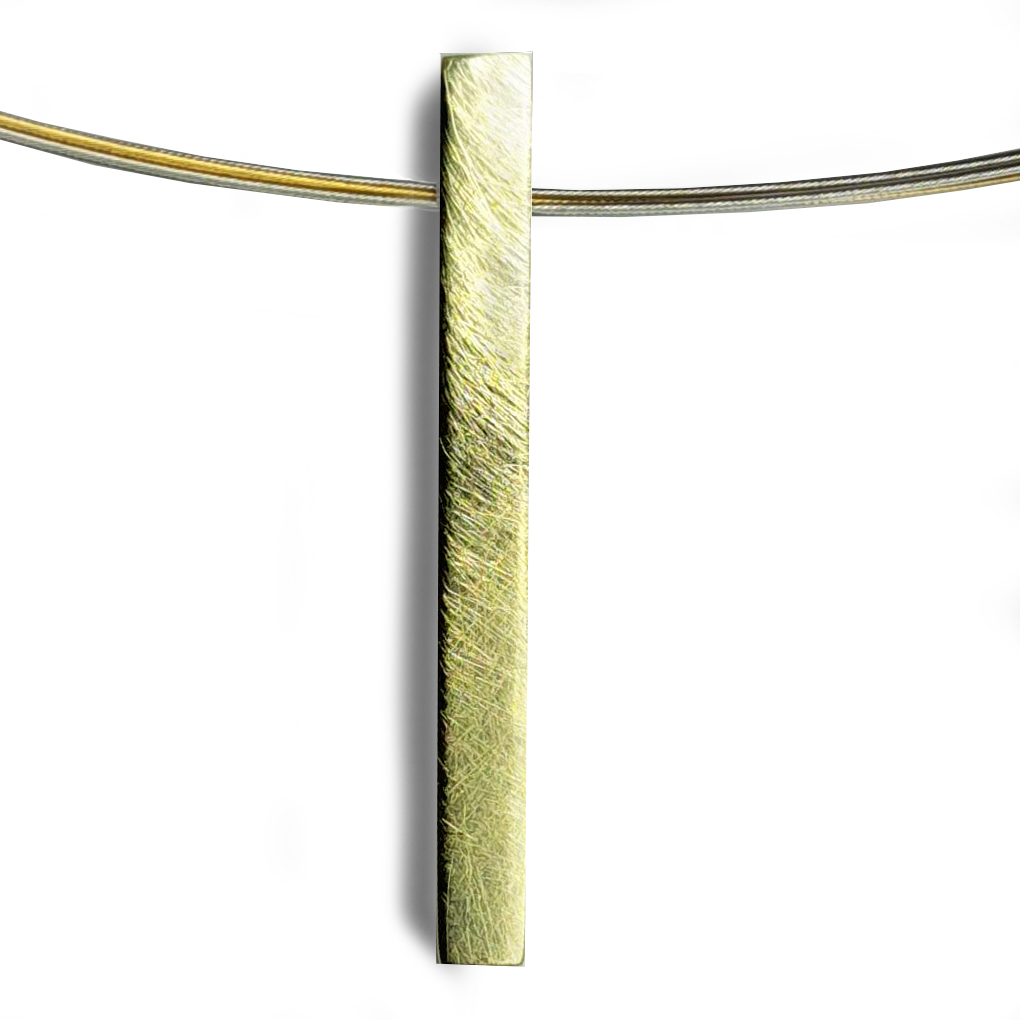 Penjoll de la col.lecció Lili, format per rectangle d’uns 3×0.3cm de plata amb la part superior amb una làmina d’or groc.