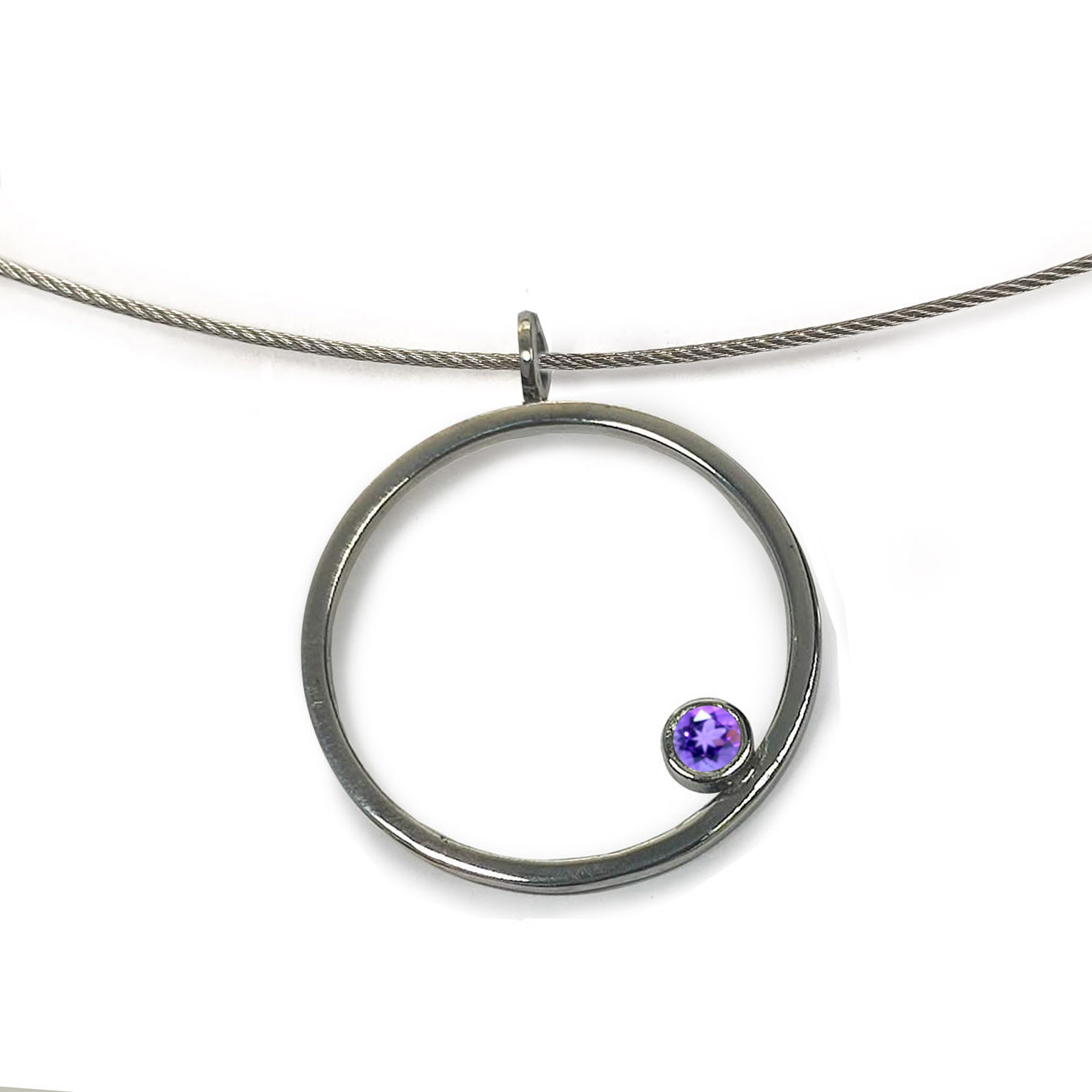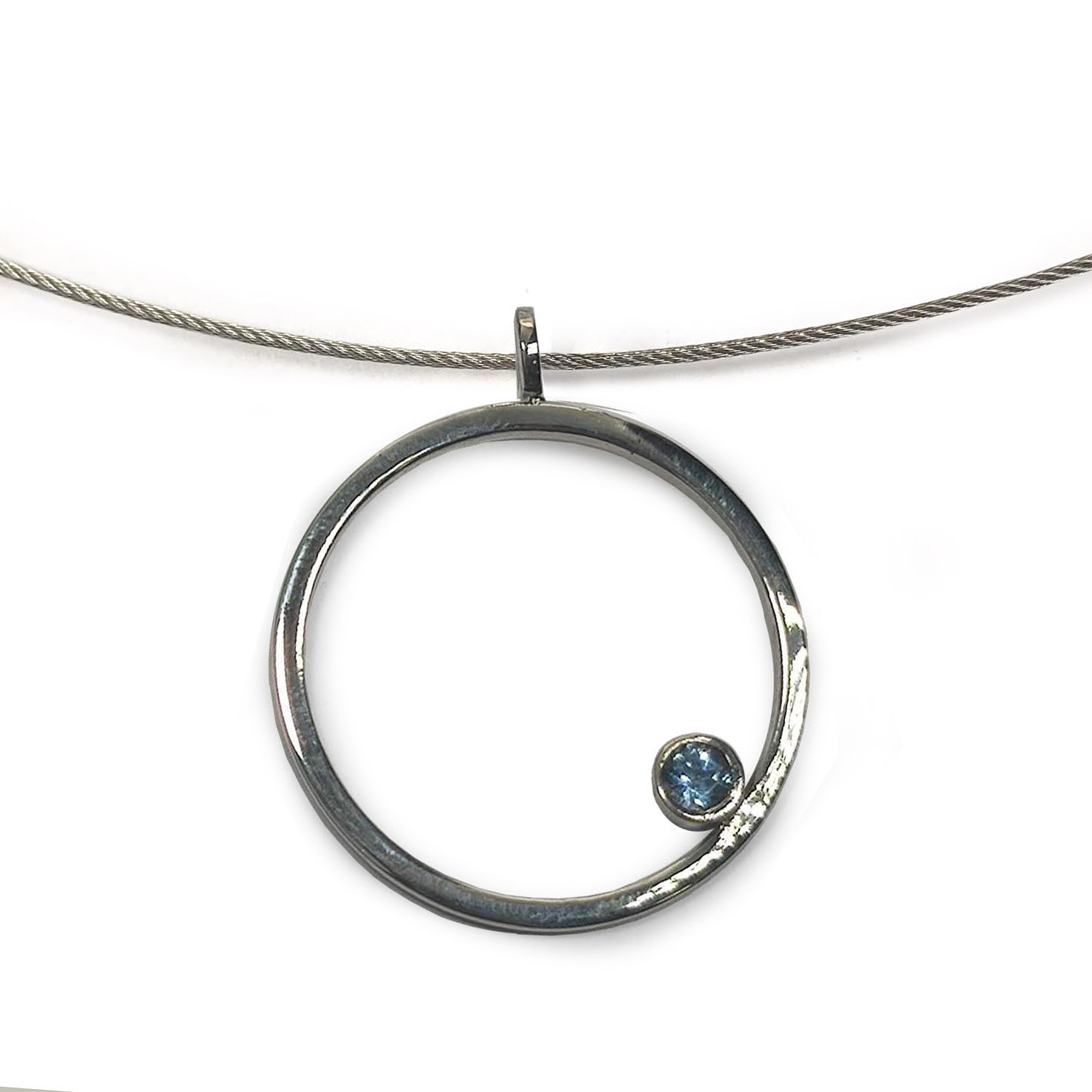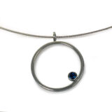 Penjoll de la col.lecció Hula Hoop, format per 1 aro de plata d’uns 2.7cm de diametre interior, de fil quadrat d’uns 1.5 mm. , amb boca de plata i pedra de 4mm.
