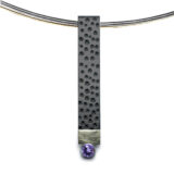 Penjoll de plata en forma de rectangle vertical d’uns 0.7 x 4.5 cm d’amplada, amb acabat amb punts. En la part inferior , linea d’or groc de 18 kts mate ratllada, i boca amb pedra de 4mm de diametre.