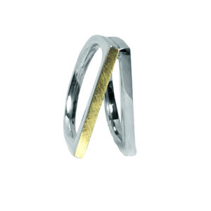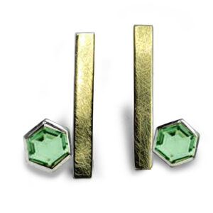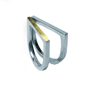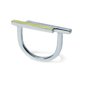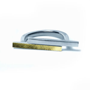 Penjoll de la col.lecció Lili, format per rectangle d’uns 3×0.3cm de plata amb la part superior amb una làmina d’or groc, i en un costat, boca rodona de plata amb pedra de 5mm.