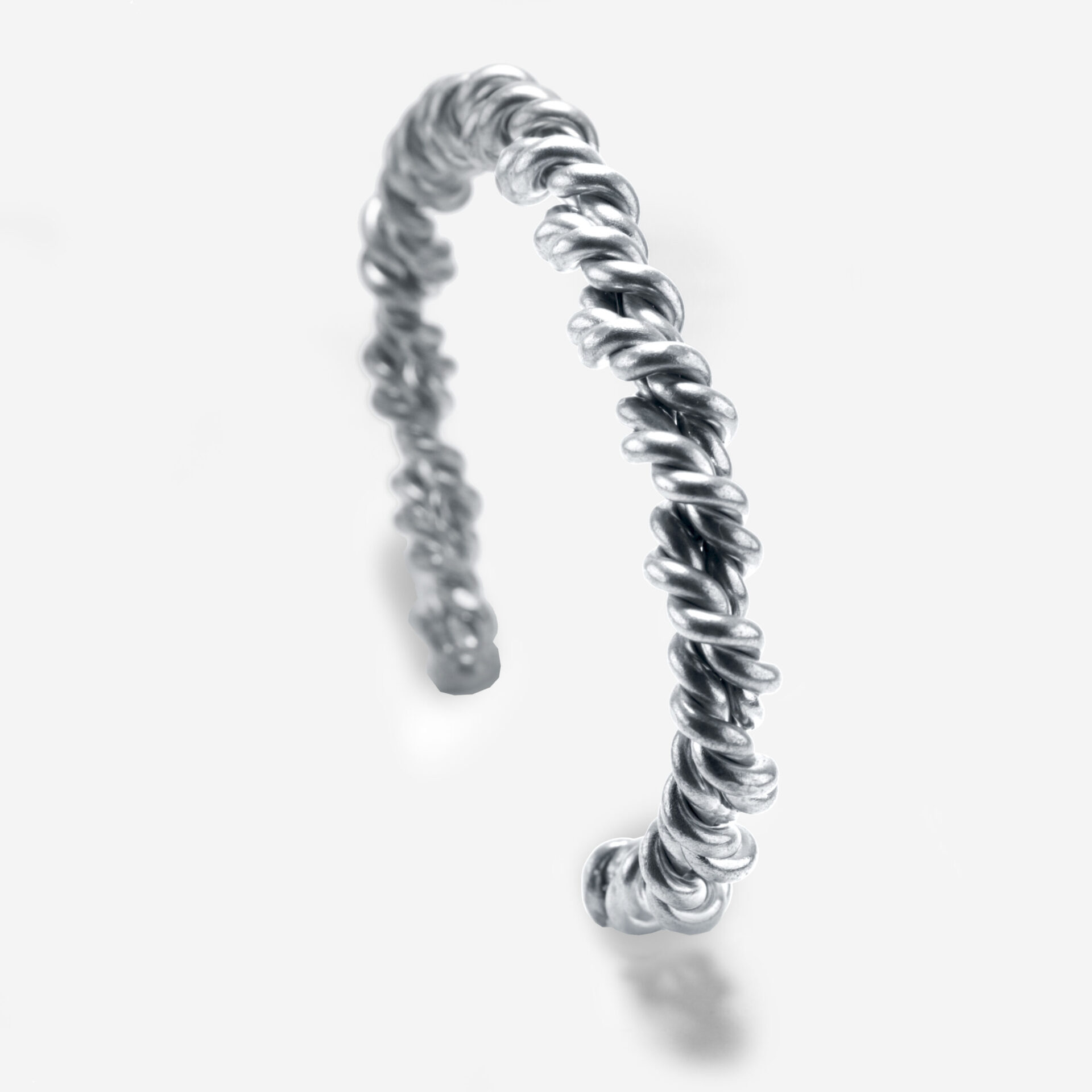 Polsera esclava de dos grups de 2 fils de plata o llautó d’uns 2mm de diametre trenats, i trenats entre ells.