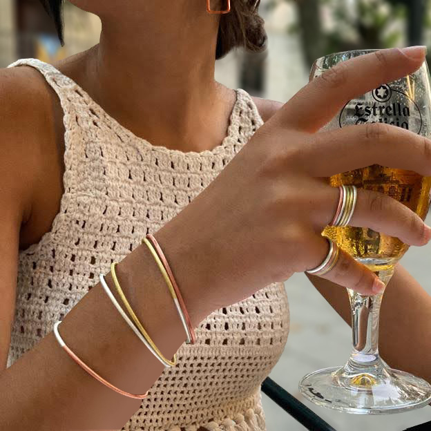 Polsera esclava de plata coure o lalutó de la col.lecció Hoops, format per fil rodó d’uns 0.2cm de gruix, diametre interior 6cm.