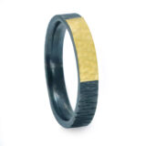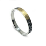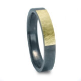 Anell de plata en fil rectangular d’uns 3.5mm d’amplada, amb diversos acabats a escollir. En la part central, rectangle d’or groc de 18 kilats.