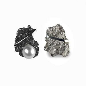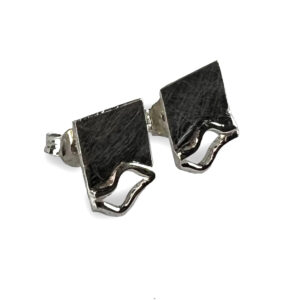 Arracades de plata ennegrida en forma ovalada, amb textura martele,d'uns 2.8x0.7cm i per sobre, una altre més petita de llautó. Tanca pressió.
