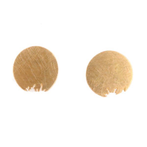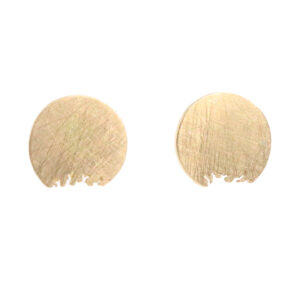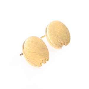 Arracada d'or groc, d'uns 1,2 cm. En forma de disc rodó amb mosegada. Tanca a pressió d'or groc.