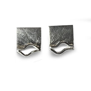 Arracades de plata en forma de quadrat d'uns 1cm. amb doble ona de fil rodo en un extrem. Tanca pressió.